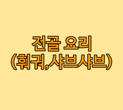 | 훠궈 | 중국 | 마라, 사골, 토마토등 | 생재료를 육수에 읽혀 먹음 | 고기, 해산물, 두부 |